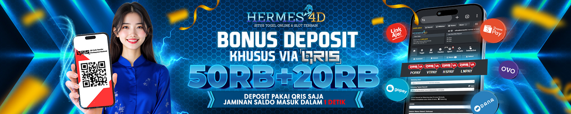 SANGAT DI SARANKAN DEPOSIT MENGGUNAKAN QRIS ( SCAN BARCODE ) UNTUK MENGHINDARI KESALAHAN TRANSFER / TRANSAKSI TERPENDING | !! SELALU BERHATI-HATI TERHADAP WEBSITE TIRUAN / PHISING YANG MENGATASNAMAKAN HERMES4D !!